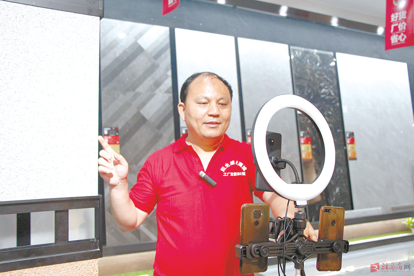 近日,驻马店晋氏阳光建材商城负责人通过抖音直播与用户互动,以增大产品销量。 记者 吴胜军 摄