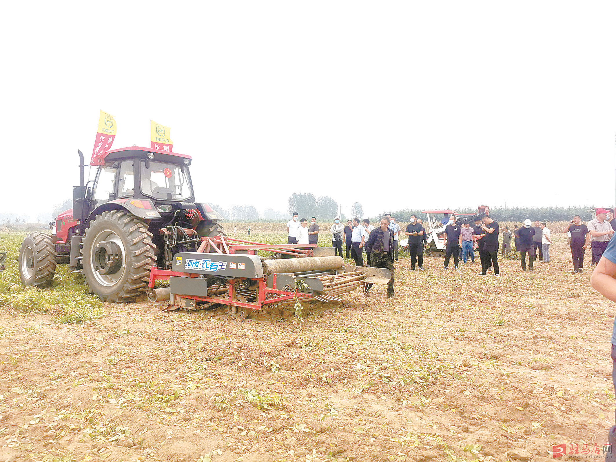 花生收获机械现场演示。 记者 陈 诚 摄