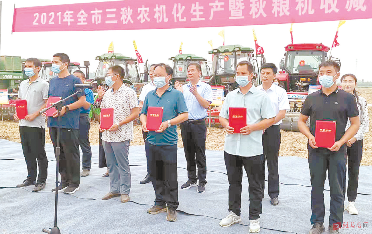本报讯(记者 陈 诚)9月17日,2021年全市“三秋”农机化生产暨秋粮机收减损工作推进会在确山县刘店镇彭庄村召开。来自全市各县区分管“三农”工作和农机战线的负责同志及农机专业合作社负责人参加会议。