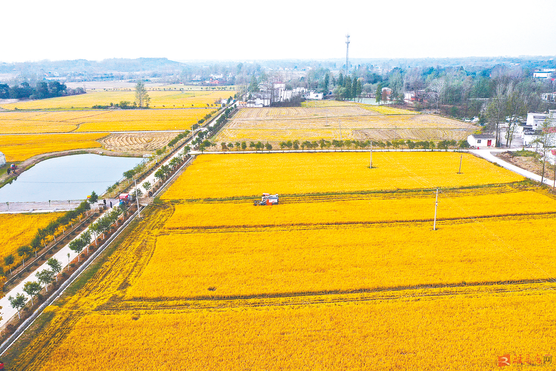 10月26日,信阳市光山县北向店乡李楼村富仁辉合作社社员在抢收晚稻(无人机照片)。眼下正是河南省信阳市晚稻收割时节,当地农民利用晴好天气加紧收割水稻,确保颗粒归仓。
