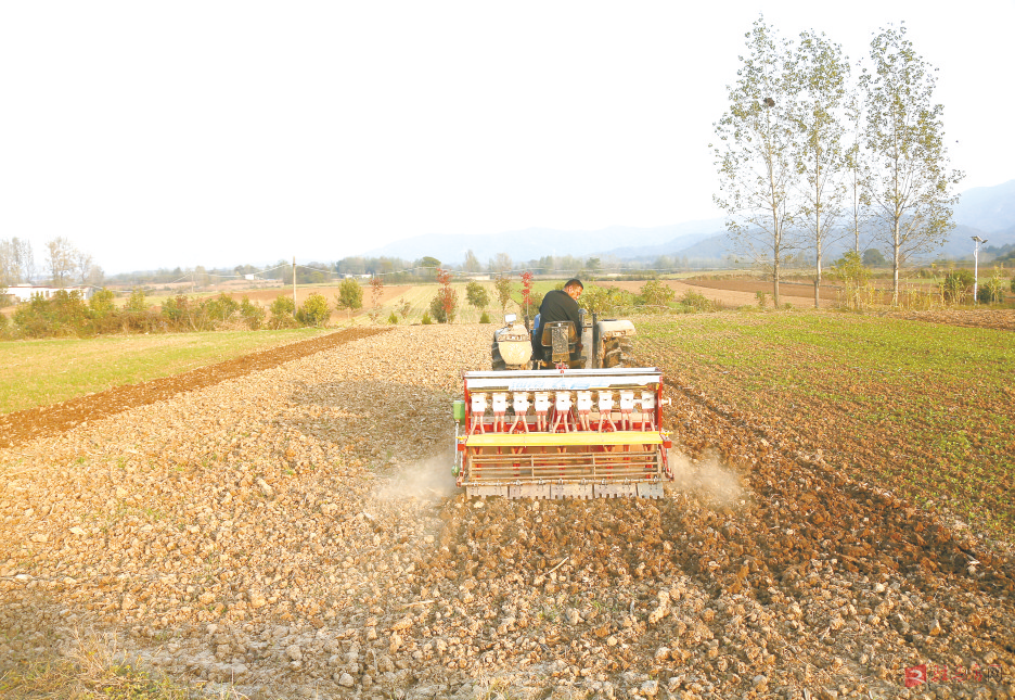 村民告诉记者,由于土壤和天气原因,有的地块前期播种的小麦出苗不均匀,甚至不出苗。为保证产量,要及时对出苗不均和不出苗的地块进行补种作业。 记者 李 旻 摄