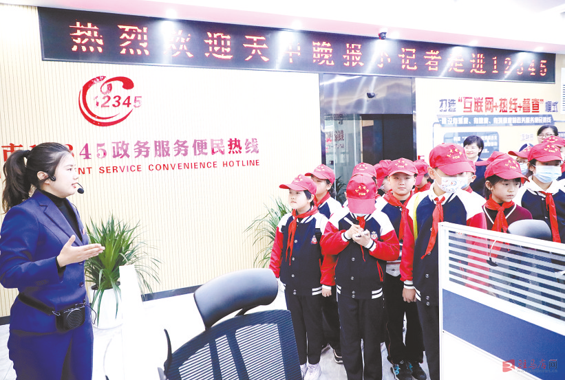“12345,有事找政府。”这句话在驻马店可谓是家喻户晓。市12345政务服务便民中心日均接听群众来电3500通,主要涉及市民生活、工作中遇到的各种问题。10月29日,来自驻马店实验小学北校区的15名天中晚报小记者带着好奇心,走进市12345政务服务便民中心,亲身体验为民服务的感觉。