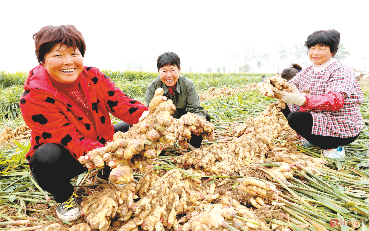 11月4日,在驿城区诸市镇姜庄村,村民们正忙着采收生姜,一派热火朝天的景象。 姜庄村是豫南地区生姜培育基地。据基地负责人张继磊介绍,今年种植生姜100多亩,每亩产生姜8000多公斤,亩产值3万多元。 记者 高琳琳 通讯员 米 山 摄影报道
