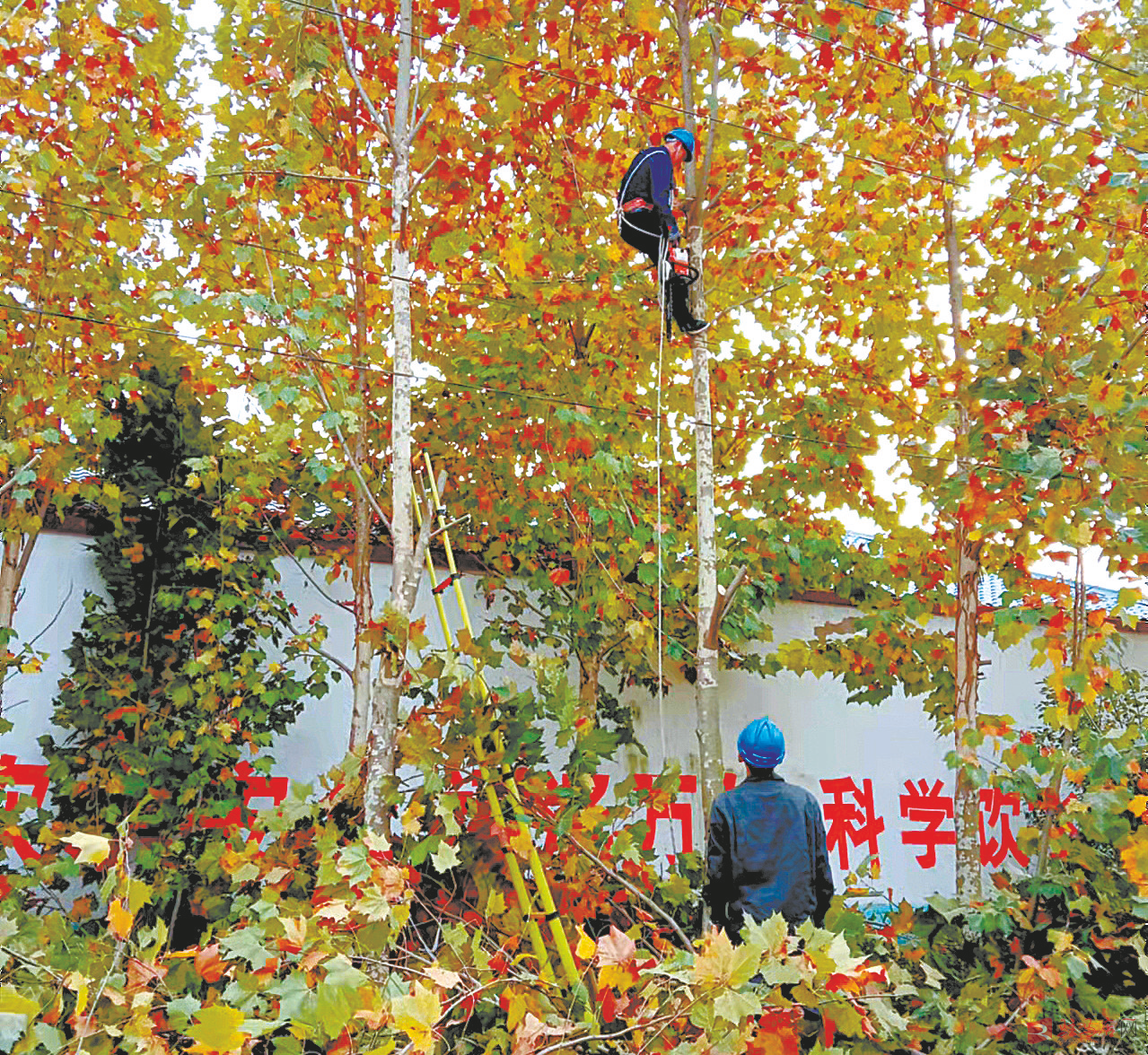 11月4日,国网平舆县供电公司杨埠中心供电所人员正在对10千伏双供5线路开展巡视及清除树障工作,彻底消除线路安全隐患,全力打造安全通道。 记者 宋 玉 通讯员 闫梦珂 摄影报道