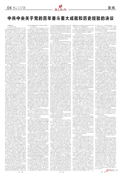中共中央关于党的百年奋斗重大成就和历史经验的决议