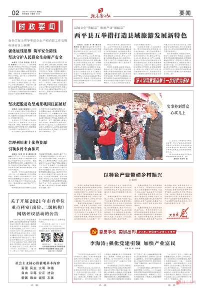 本报讯(记者 许 静 通讯员焦艳艳 孙 秋)日前,西平县全面学习省第十一次党代会精神,深入研究贯彻落实举措,扛实责任,决心立足“十四五”,以五举措抓实县域旅游。