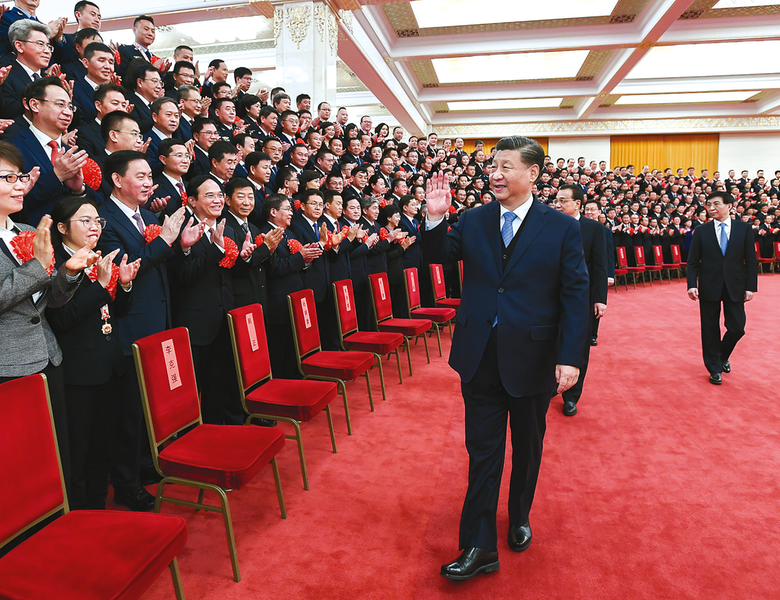 12月15日,党和国家领导人习近平、李克强、王沪宁、韩正等在北京人民大会堂会见平安中国建设表彰大会代表。新华社记者 谢环驰 摄