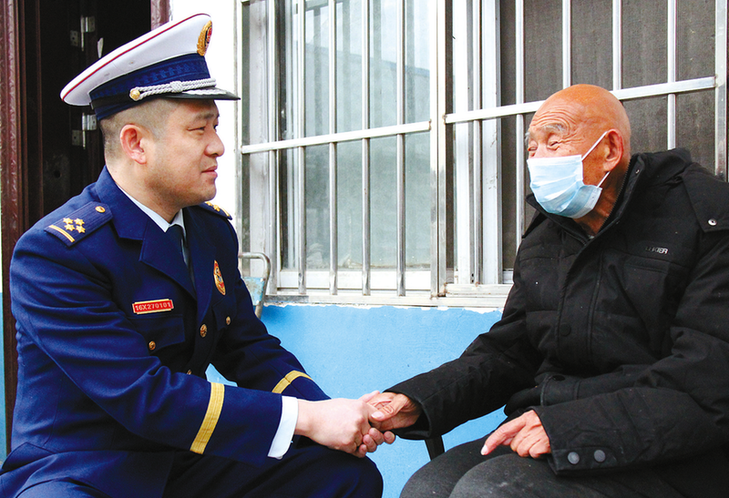 消防指战员与老人亲切交谈,认真检查每个房间内电器、线路等安全性和稳定性,并向工作人员和老人讲解如何扑救初期火灾和火场逃生自救等消防知识。