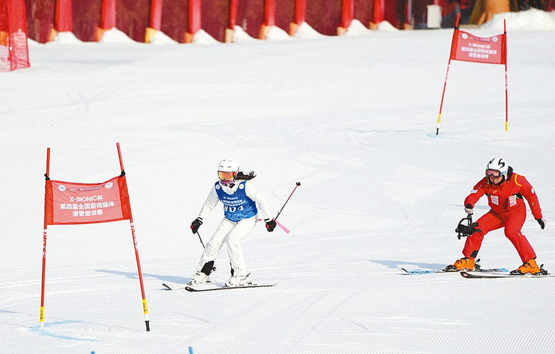 12月22日,在女子高山组比赛中,摄像师在跟拍来自马蜂窝旅游网的王冰,她最终获得这个项目的金牌。当日,“X-BIONIC杯第四届全国新闻媒体滑雪邀请赛”在北京市军都山滑雪场举行。本次比赛由中国滑雪协会主办,北京市滑雪协会承办,中国冰雪大会作为支持单位,吸引了来自全国30多家新闻媒体,100多位新闻工作者参赛。