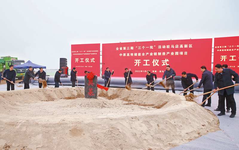1月4日,市委书记鲍常勇、市长李跃勇,中国平煤神马集团党委书记、董事长李毛等共同为总投资32亿元的中国平煤神马集团中原高效储能全产业链制造产业园项目开工奠基培土。 记者 弓华静 摄