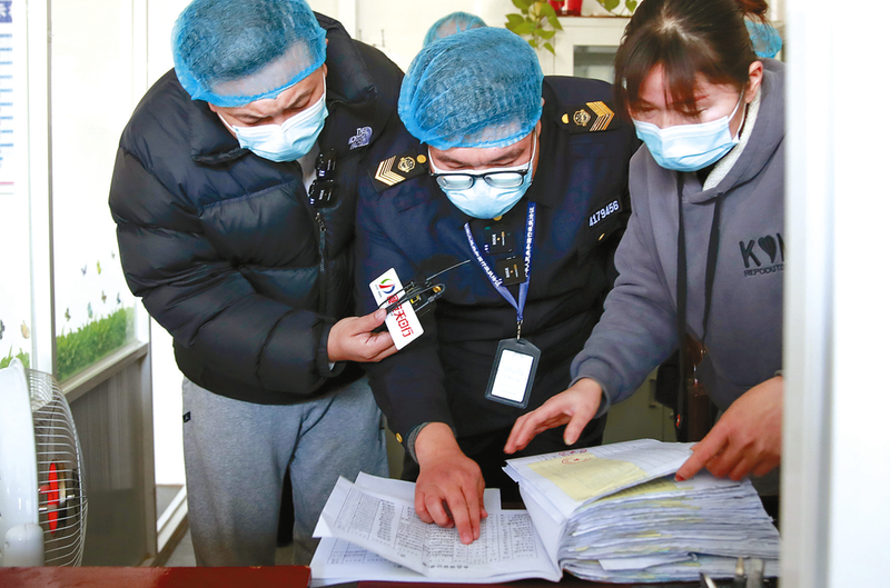 执法人员突击检查食品来源。