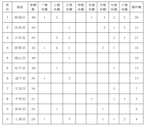 《驻马店日报》2021年12月份发稿统计