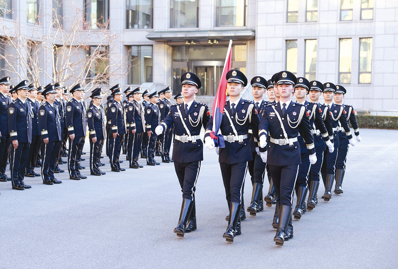 1月10日晨,公安部举行升警旗仪式庆祝中国人民警察节,部机关干部代表200余人参加。 新华社记者 殷 刚 摄