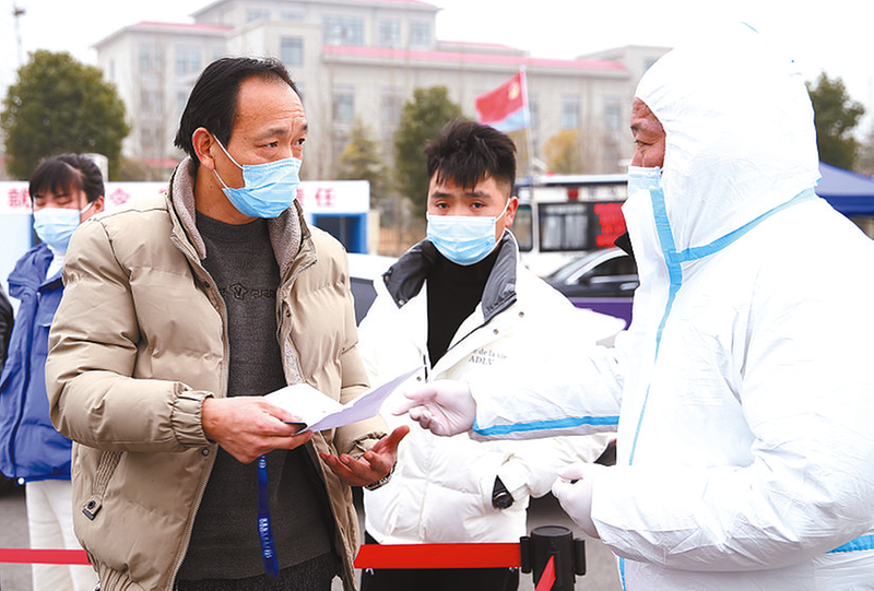 寒风中,来自驿城区的医务工作者耐心地对来自市域外人员进行认真询问、两码检验,并对无核酸证明人员逐一登记、现场检测。