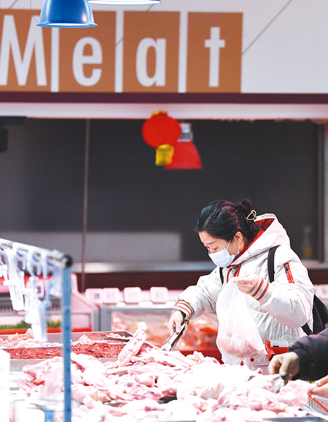 1月11日,居民在天津物美超市(华苑店)选购肉类商品。