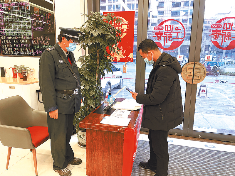 为全面保障员工和客户生命安全,近日,工行正阳县支行在做好日常疫情防控的基础上,抓好重点场所、重点人群、重点环节管理,切实保障员工和客户健康。图为该支行工作人员引导进入网点办理业务的客户扫码登记。 记者 陈文科 摄