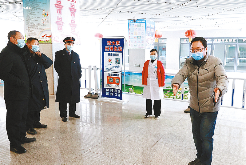 为坚决守好“外防输入”关口,连日来,驿城区新华街道周密部署,在驻马店火车站出站口严格落实体温监测、行程码和健康码查验、核酸检测结果检查等防疫措施,并逐一登记,筑牢疫情防线。 记者 郑付生 摄