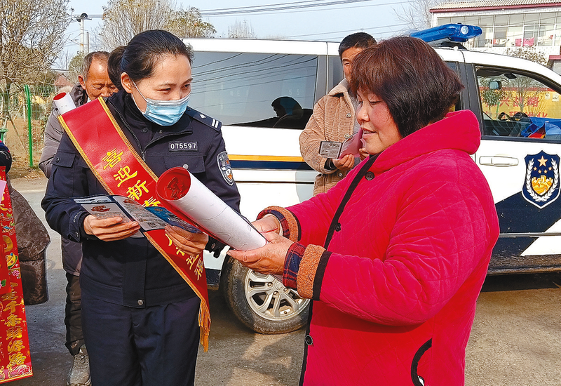 为有效遏制电信网络诈骗案件发生,1月25日,平舆县公安局民警深入社区以送春联、年画的形式,积极开展反诈宣传活动。