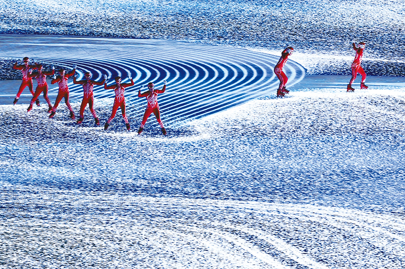 2月4日晚,第二十四届冬季奥林匹克运动会开幕式在北京国家体育场举行。这是开幕式上的“构建一朵雪花”环节。 新华社记者 李 安 摄