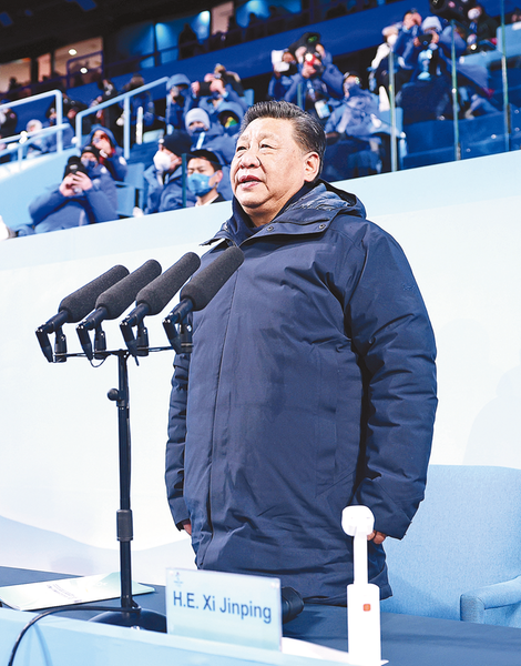 2月4日晚,北京第二十四届冬季奥林匹克运动会开幕式在国家体育场隆重举行。国家主席习近平出席开幕式并宣布本届冬奥会开幕。 新华社记者 鞠 鹏 摄
