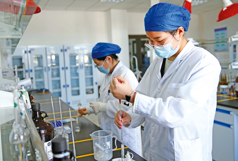 为实现经济开门红全年红,持续为高质量发展注入强劲动能,眼下我市以“起步就是冲刺、开局就是决战”的昂扬姿态统筹疫情防控和重点项目推进,为经济发展的“发动机”加满油、把稳舵、鼓足劲,向着“两个确保”阔步前进。图为天方药业的科技人员正在进行新产品的研发。