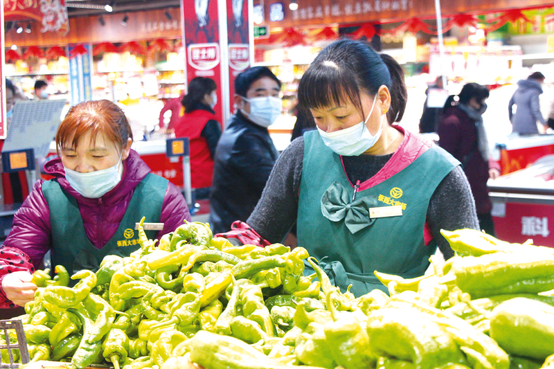 春节期间,我市“菜篮子”供应充足。图为市民在市区大润发超市选购蔬菜。 记者 吴胜军 摄
