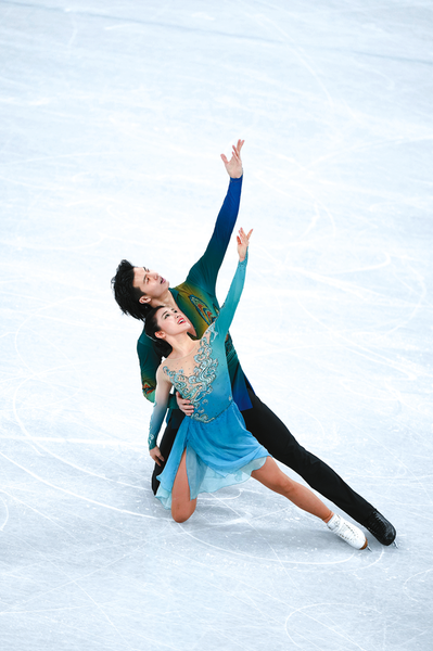 2月7日,中国选手王诗玥(下)、柳鑫宇在比赛中。当日,北京2022年冬奥会花样滑冰团体赛冰上舞蹈自由舞比赛在首都体育馆举行。 新华社记者 王毓国 摄
