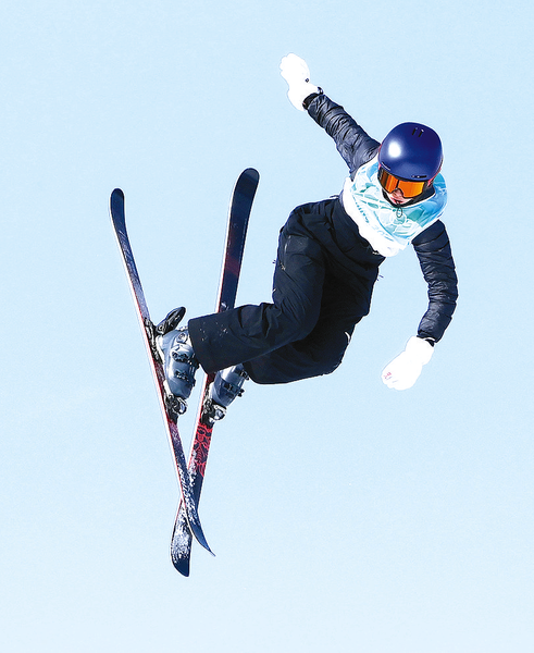 2月7日,谷爱凌在比赛中。当日,北京2022年冬奥会自由式滑雪女子大跳台资格赛在北京首钢滑雪大跳台举行。中国选手谷爱凌晋级女子大跳台决赛。 新华社记者 李 安 摄