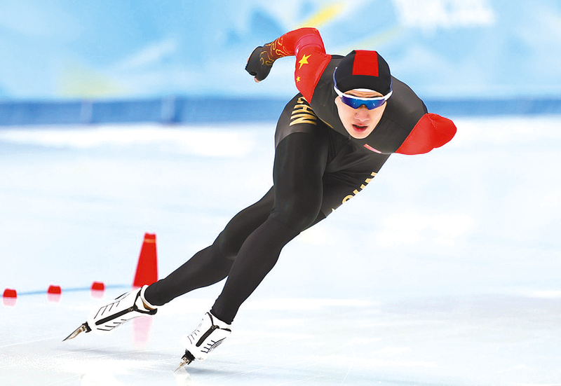 2月8日,中国选手王浩田在北京2022年冬奥会速度滑冰男子1500米决赛比赛中。 新华社记者 兰红光 摄