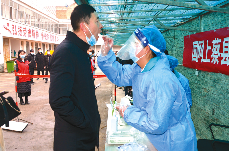 2月8日,国网上蔡县供电公司积极协调核酸检测机构,对全体职工进行核酸检测,防止带“疫”作业。
