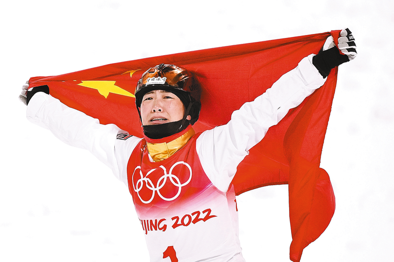 当日,北京2022年冬奥会自由式滑雪女子空中技巧决赛在张家口云顶滑雪公园举行,中国选手徐梦桃夺得冠军。