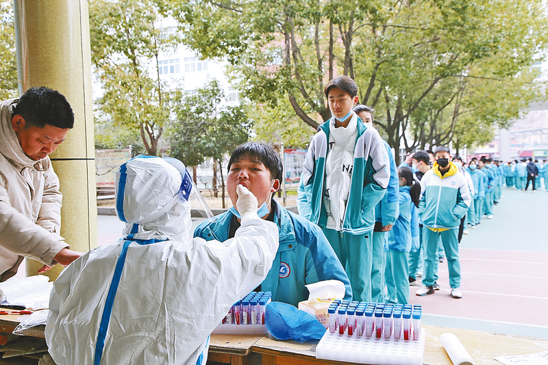 核酸采集现场。 为使全市师生在入学前顺利完成核酸采集和检测,2月15日,市第一人民医院积极响应上级部门号召,第一时间在全院抽调近100名医护人员成立核酸采集小组,按照应检尽检原则,在驿城区主城区13所学校和乡镇43所学校全力开展核酸采集工作,助力新学期顺利开学。