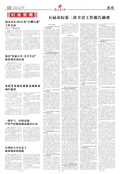 五届市纪委二次全会工作报告摘要