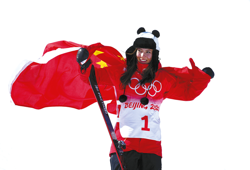 当日,北京2022年冬奥会自由式滑雪女子U型场地技巧决赛在张家口云顶滑雪公园举行。中国队选手谷爱凌夺得此项目金牌。(相关报道见第四版)