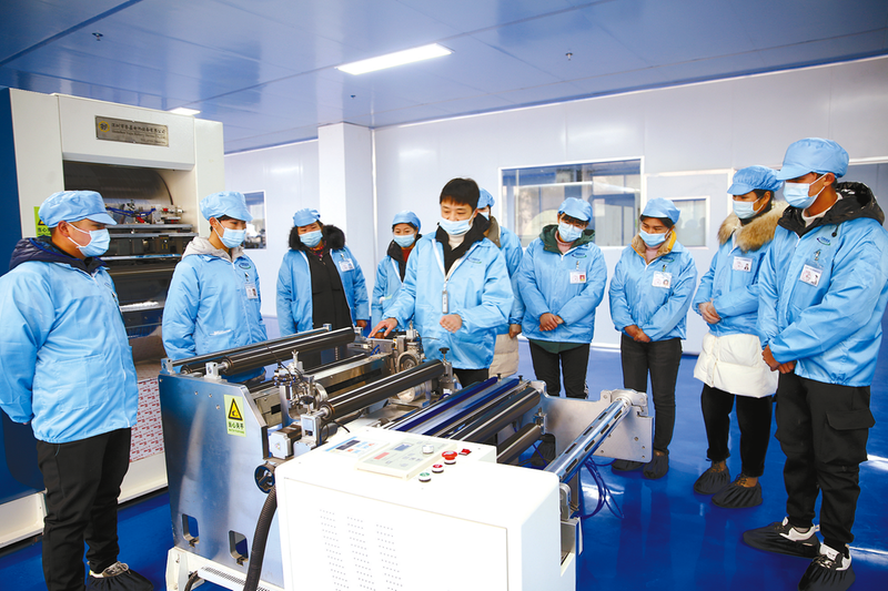 2月18日,在正阳县河南万锂新能源有限公司的生产车间里,技术主管正在对新入职的工人进行技术培训。该公司由返乡创业人员李荣辉成立,总投资3.3亿元,主要生产聚合物锂离子电池,目前设备已安装完成,进入人员培训阶段。