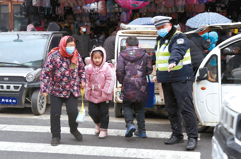 2月17日,是新蔡县中小学春季开学第一天。新蔡县公安局发挥“大手拉小手”作用,在各中小学校、幼儿园路段设置护学岗,采取“定人、定岗、定时、定责”的原则,交警提前到岗到位,指挥疏导交通,实施交通管制,护送学生安全有序过马路,筑牢交通安全防线。 记者 代廷伟 通讯员 李青山