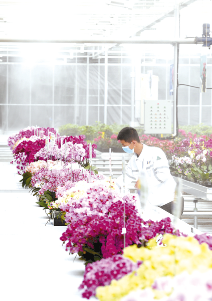 2月23日,在和政县一家现代花卉产业园,工作人员对花卉进行日常管护。初春时节,甘肃省临夏回族自治州和政县室外最低温度虽然仍低至零下十几摄氏度,和政县三合镇石虎家村的一家现代花卉产业园却通过智慧农业技术,让园中呈现“春未暖花已开”的景象。新华社记者 范培珅 摄