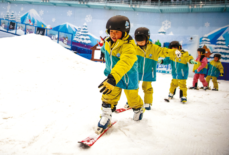 2月24日,在冰雪运动体育课上,孩子们练习双板滑雪。北京冬奥会已经圆满落幕,在南方城市重庆,冰雪运动氛围依然浓厚。作为重庆唯一“全国青少年校园冰雪体育传统特色学校”,近日,树人博文小学新学期冰雪运动课正式开课,南方的孩子们在老师的指导下享受冰雪的乐趣。 新华社记者 唐 奕 摄