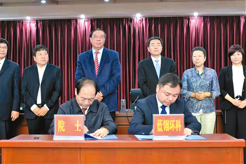 蓝翎环科董事长李宏伟与王复明院士签约。 (资料图片)