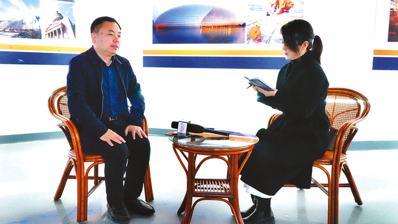 蓝翎环科董事长李宏伟接受媒体采访。 张启龙 摄
