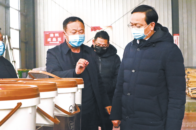 2022年1月26日,市政协副主席、平舆县委书记赵峰到河南驼峰防水科技有限公司调研指导。(资料图片)