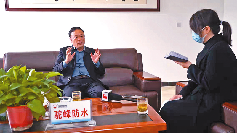 驼峰防水董事长邢建华接受媒体采访。 张启龙 摄