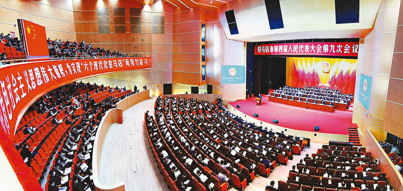 3月2日上午,驻马店市第四届人民代表大会第九次会议在驻马店国际会展中心隆重开幕。 记者 吴 波 摄 本报讯(记者 刘华山 周 由)3月2日上午,驻马店市第四届人民代表大会第九次会议在驻马店国际会展中心隆重开幕。会议高举习近平新时代中国特色社会主义思想伟大旗帜,认真听取政府工作报告,审查计划报告、预算报告和草案,凝聚共识、砥砺前行,奋力谱写全面建设现代化驻马店更加出彩的绚丽篇章,以优异成绩迎接党的二十大胜利召开。