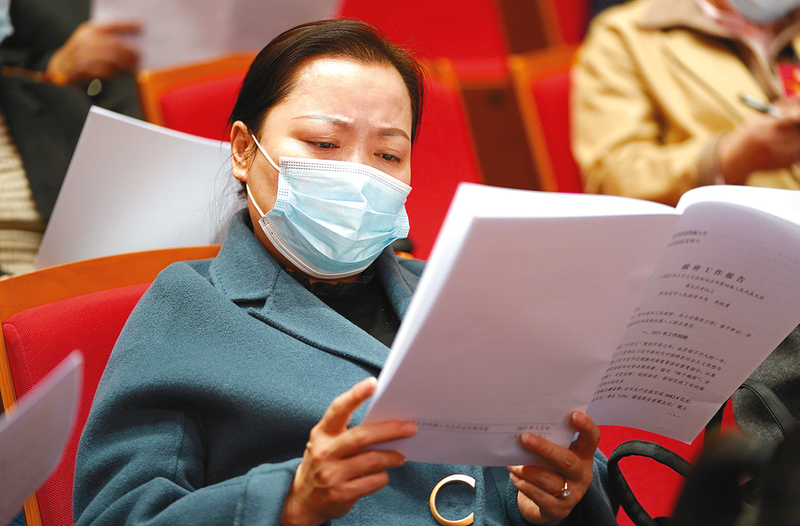 政协委员听取提案审查情况的报告(草案)。 记者 吴胜军 摄