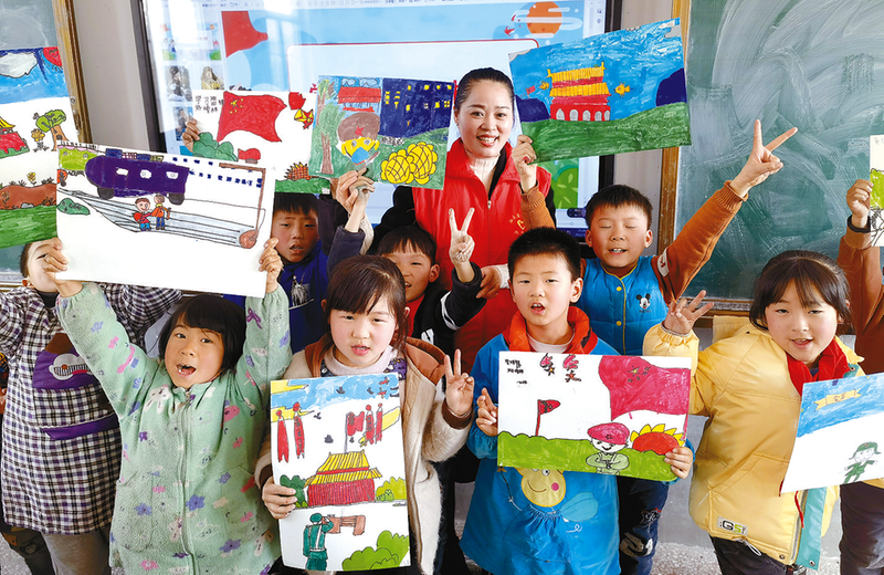 驻马店实验小学志愿者给孩子们上了绘画课。 记者 张 宁 摄