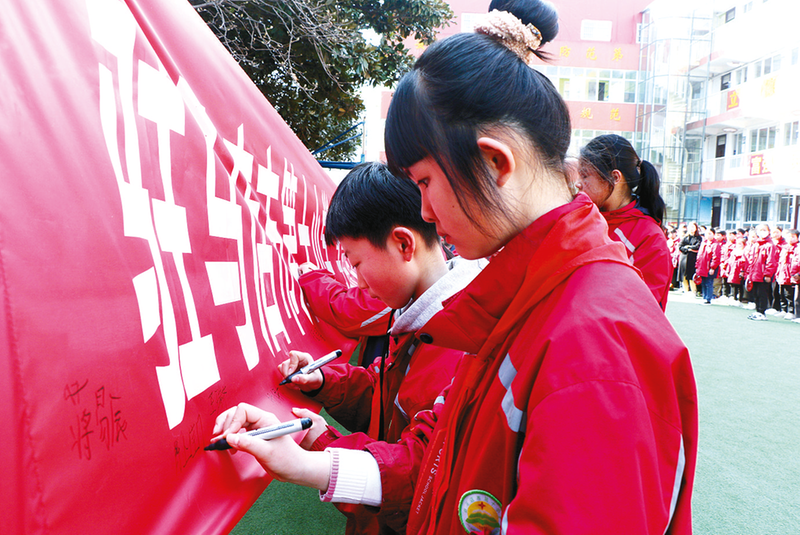 驻马店市第十小学举办学雷锋签名仪式。 通讯员 曹 威 摄