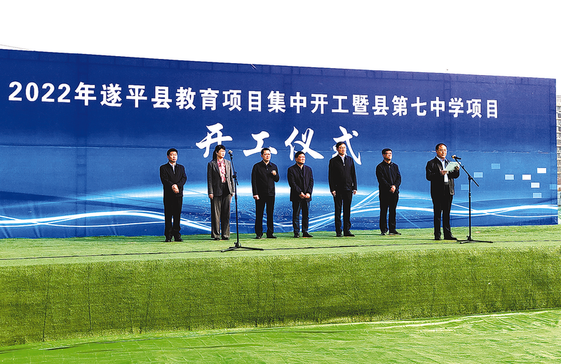 2022年,遂平县规划新建、改扩建、续建中小学校、幼儿园共计13所。3月15日,遂平县第七中学项目开工,项目占地面积113.31亩,总投资2亿元,建成后可增加学位3420个。