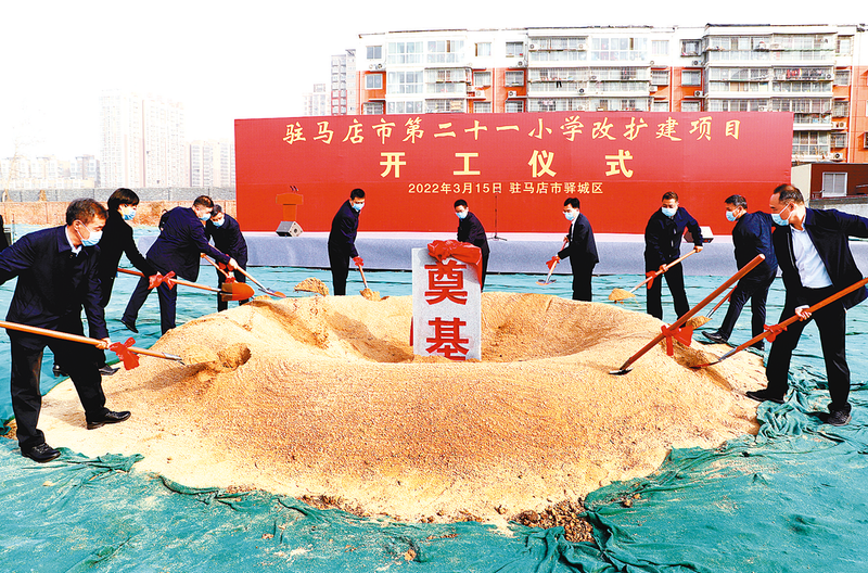 2022年,驿城区谋划实施教育项目10个,总投资16.56亿元。3月15日开工的驻马店市第二十一小学扩建项目,计划投资9300万元,规划西扩31.8亩,建筑面积11169.83平方米,增加学位900个。