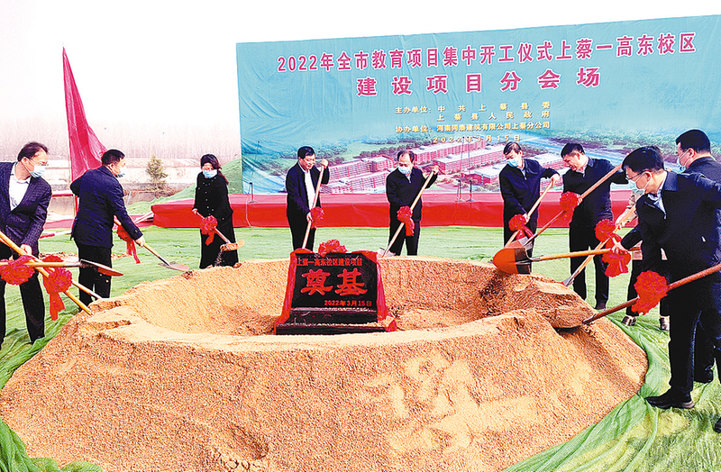 3月15日,上蔡县第一高级中学东校区项目开工。该项目建筑面积22690平方米,建成后可新增60个教学班3000个学位,计划今年底交付使用。