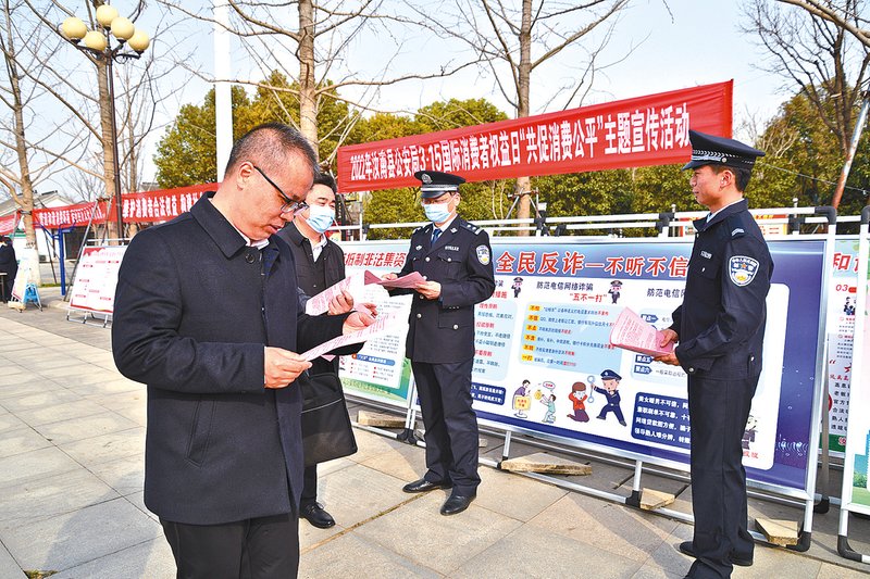 为提升广大群众识假防骗意识,保护自身合法权益,3月15日,汝南县公安局组织经侦、反诈、食药环等相关民警在天中山广场开展保护消费者权益群众性宣传活动。 通讯员 葛 生 徐小斌 摄影报道